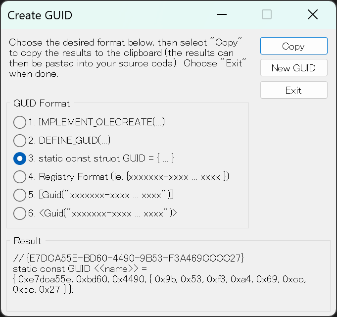 GUID の生成には、Visual Studio 2026 の Tools > Create GUID を使用しました。